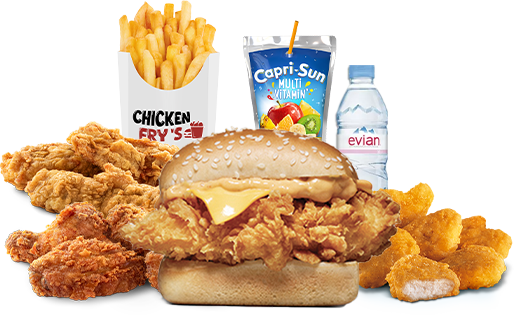 1 MINI CHICKEN OU 2 FILETS TENDERS OU 3WINGS OU 4 NUGGETS 1 FRITE – 1 BOISSONS